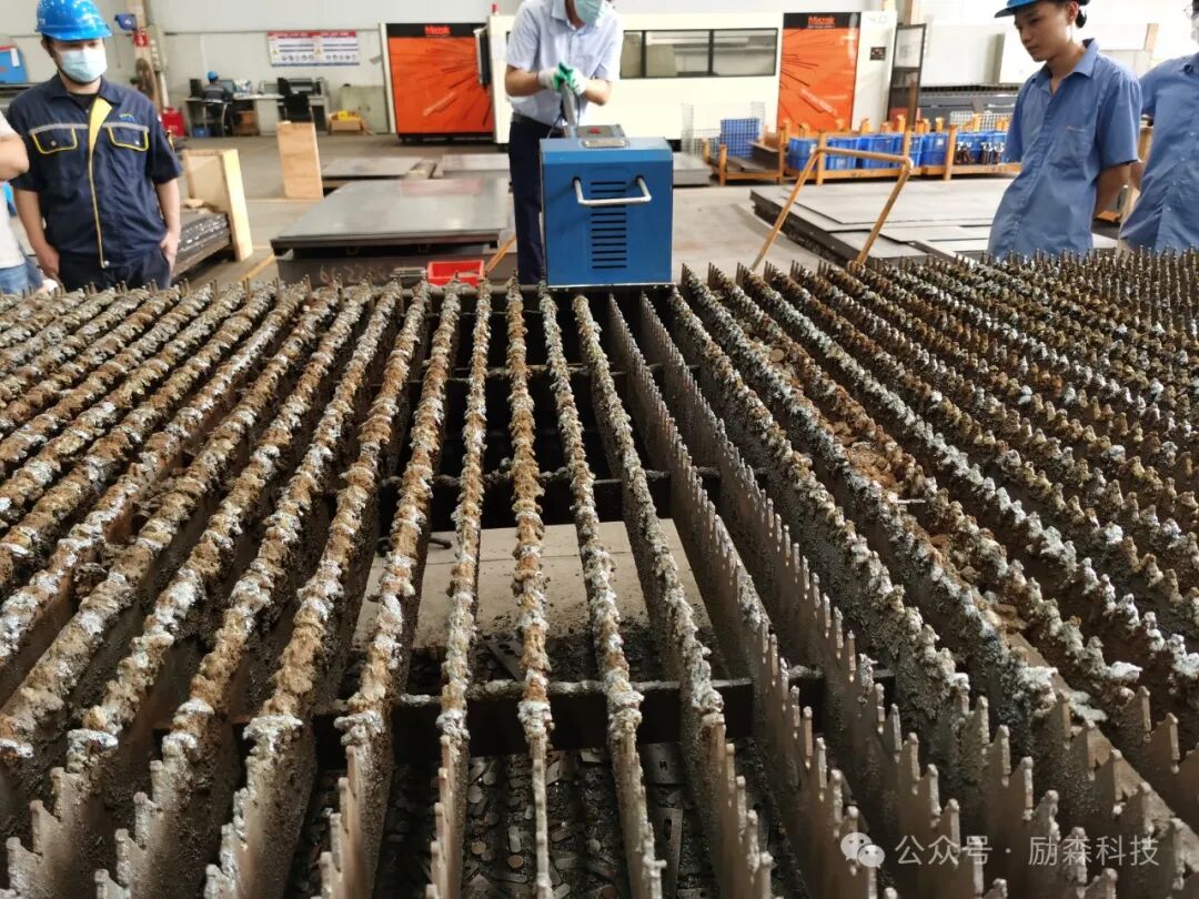 現(xiàn)場(chǎng)測(cè)試的是12KW光纖激光機(jī)去熔渣,從如何組裝設(shè)備,如何標(biāo)準(zhǔn)、安全操作一套流程介紹到開始大概10分鐘左右,連 操作工人都是很有耐心的聽,了不起。
